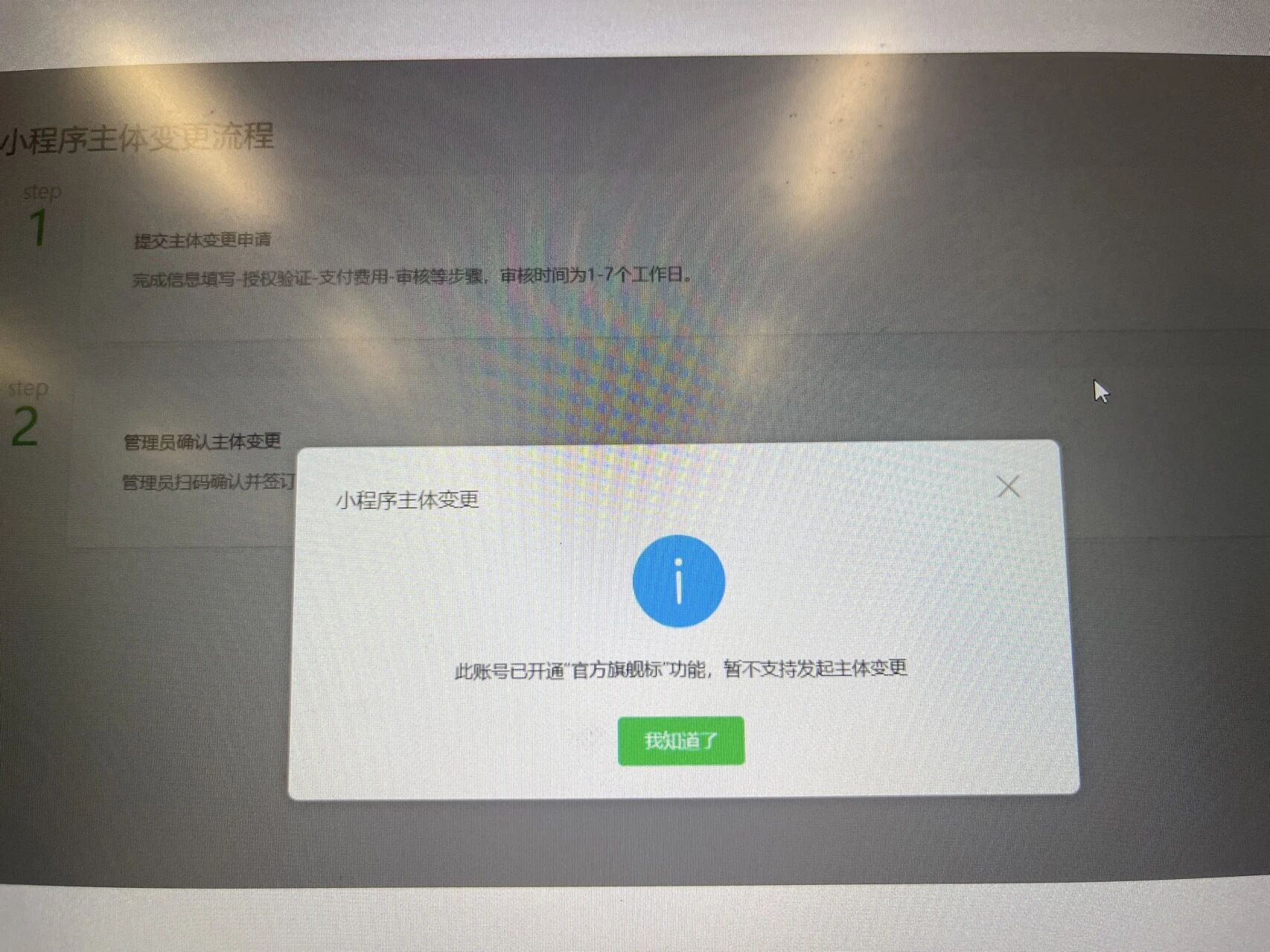 由于业务发展需要,我品牌的官方旗舰店小程序店铺需要更换经营主体,平台提示官方旗舰店认证不能换主体,要如何解决?