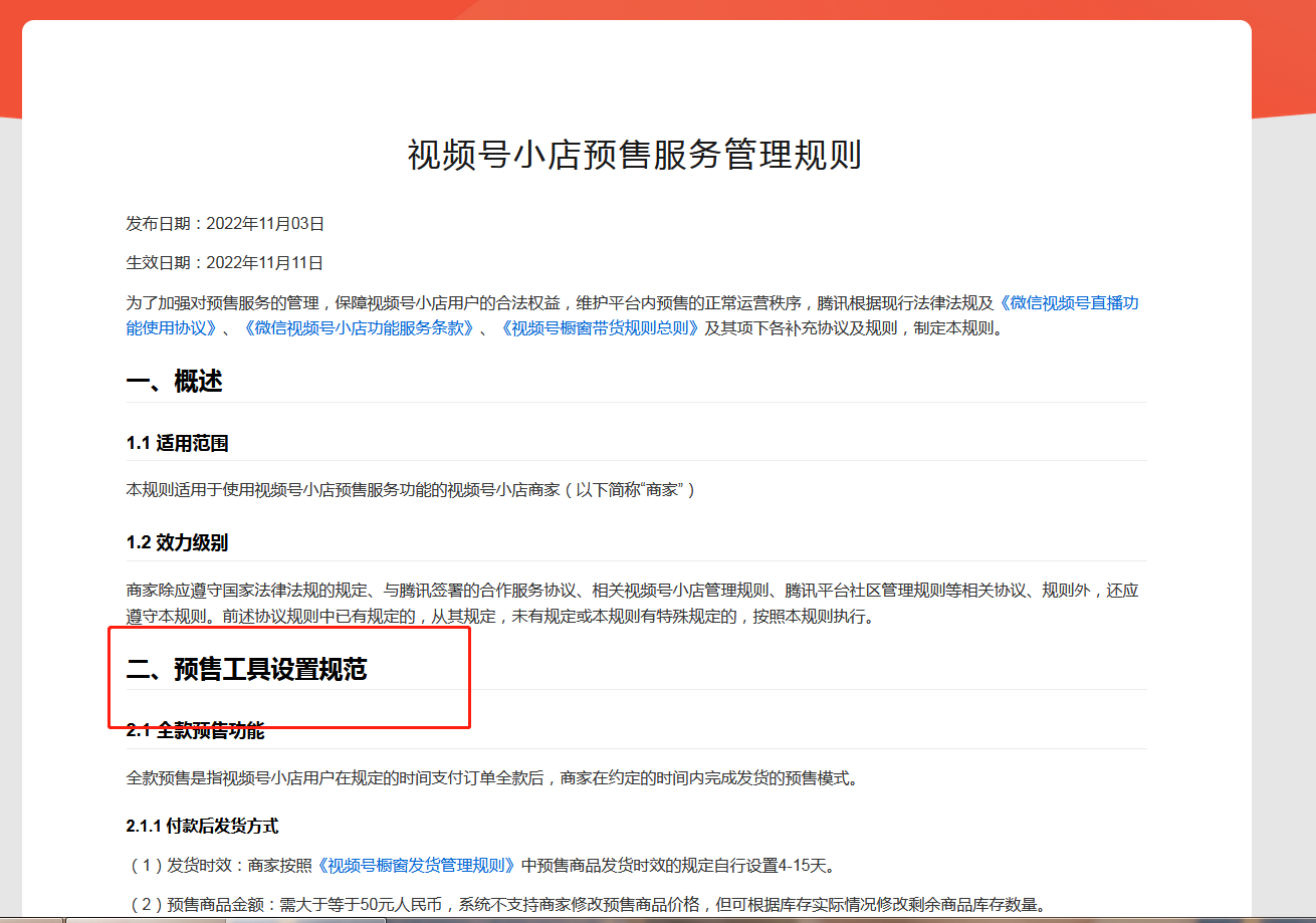 视频号小店这个预售功能已经生效了,对应这个预售功能的设置在哪里设置呢?