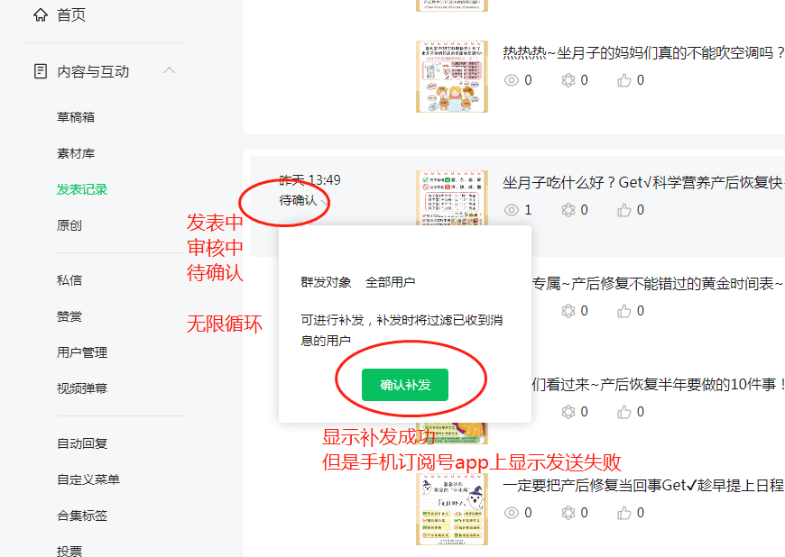 你好,如果补发多次后仍然失败,可以重新提交新的群发,这种群发失败不会消耗次数