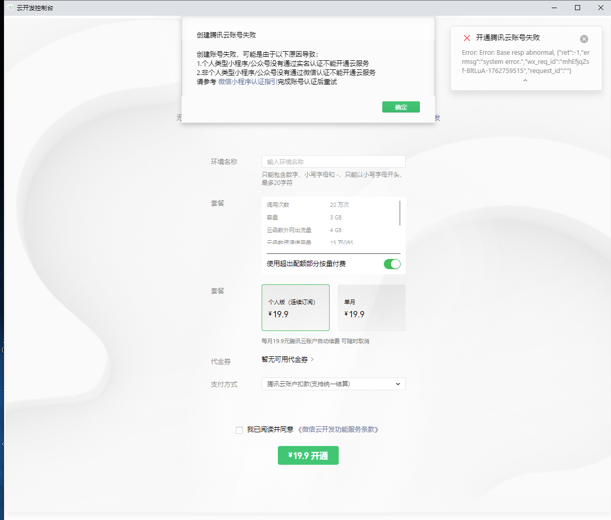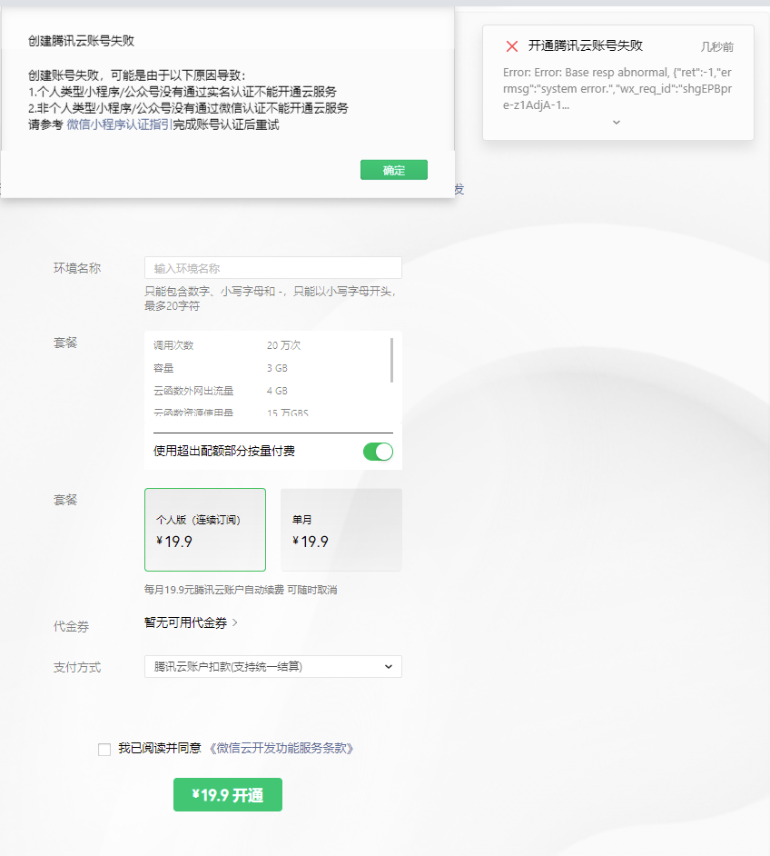 非个人认证没有完成微信认证备案会导致无法开通云开发?