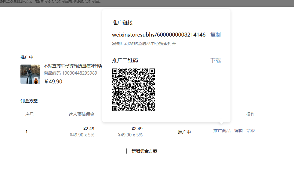 但是我在是(微信小店·联盟带货机构)这个后台中。找到该产品。添加了一个推广计划。然后点击推广从推广的图片中的二维码,扫码过去可以在手机上添加这个商品。