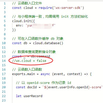 官方的云函数uploadScore里的 wx.cloud = false;是什么鬼?