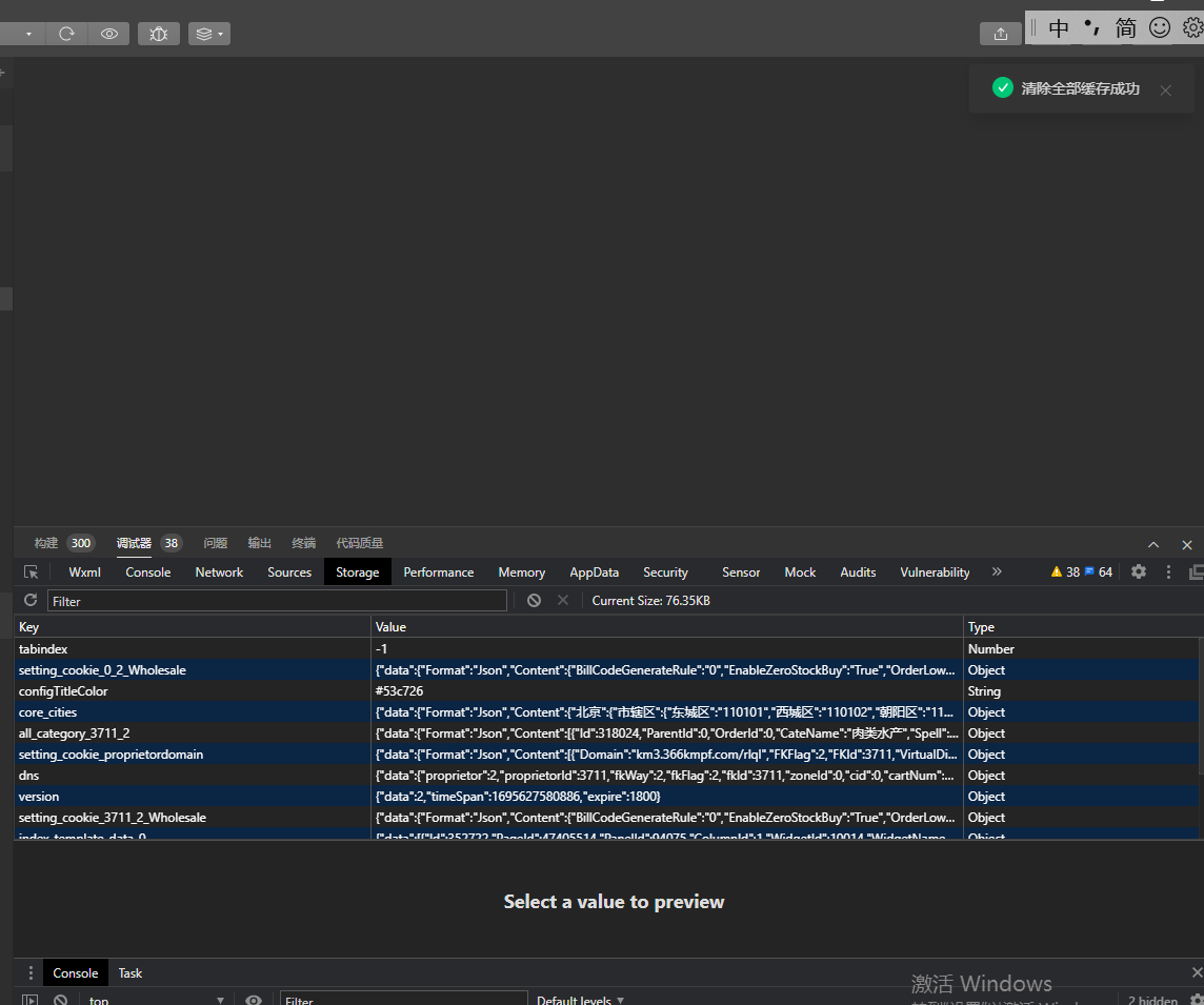 有时候先清除了storage,然后点顶部的全部清除,会导致下面的缓存又被设置回来