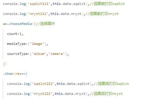 右图是执行wx.chooseMedia选择图片前和后,各打印一次两个设置值