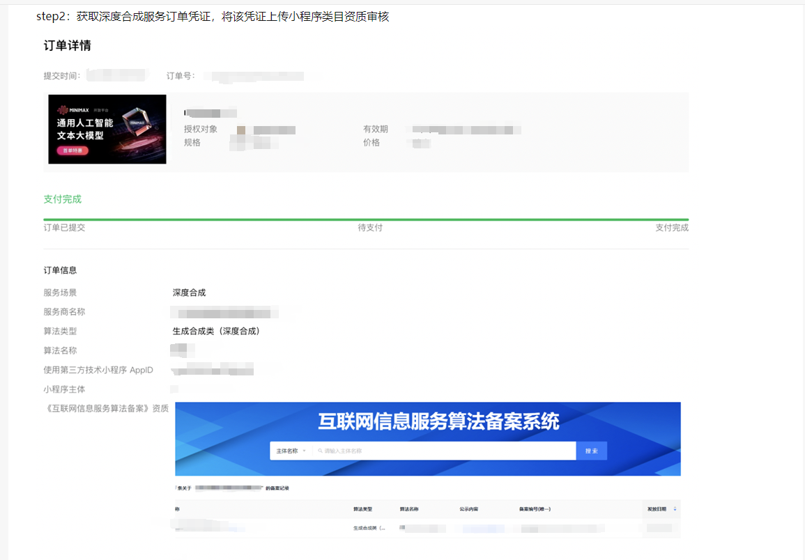 在腾讯做微搭里搭建了一个agent 发布,并同时授权小程序发布,需要增加“深度合成——AI问答”,需要提供资质,按指引到了微信市场,采买服务,做了截图,但未通过,依然还是缺证明,该在哪里获取该证明。
