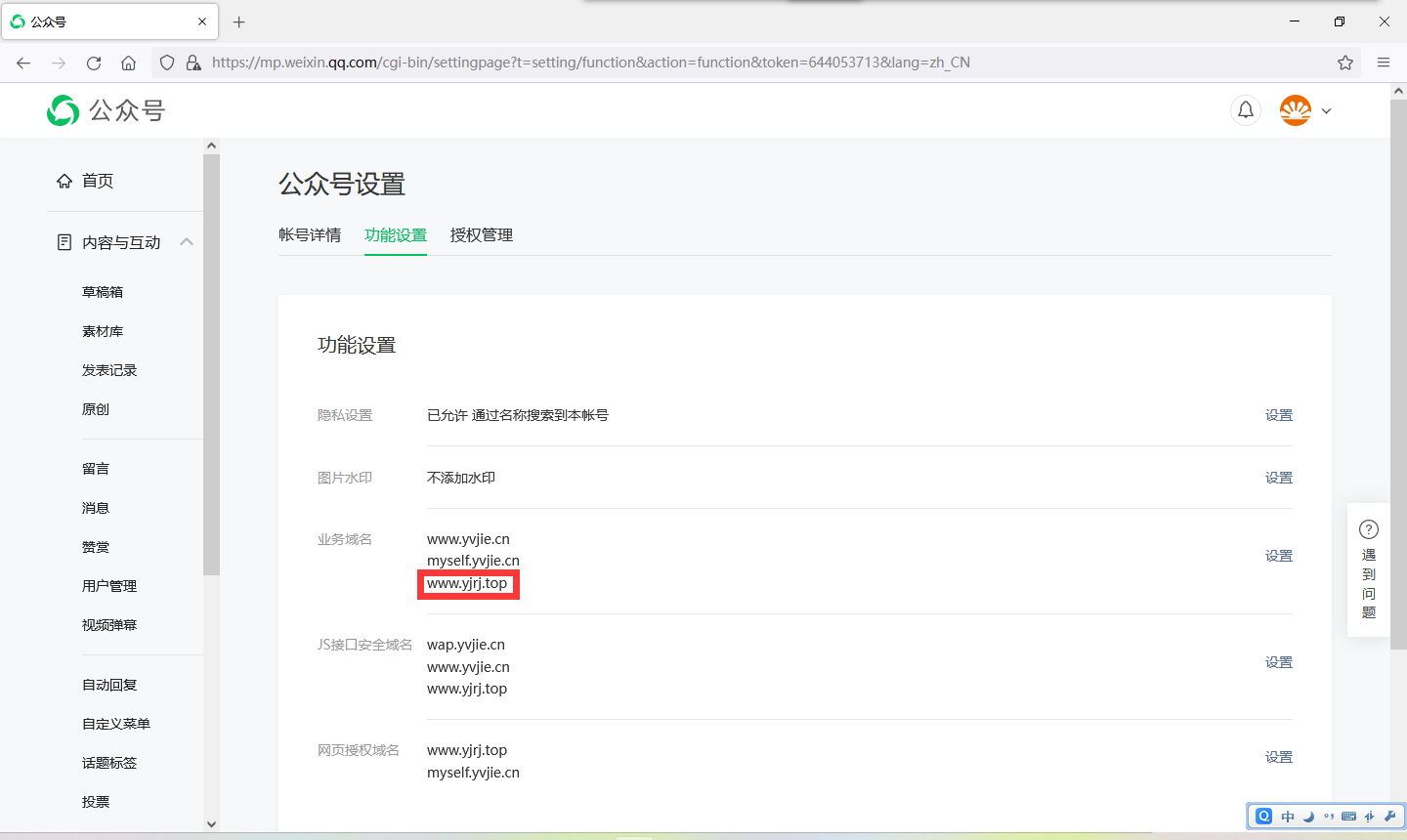 那么,这个腾讯系内域名是指什么呢?两年前,只要将域名设置为微信公众平台的业务域名,即可在该域名下正常显示图片,最近两年该方法失效,在业务域名下以http和https调用微信公众平台的图片,均不能正常显示。