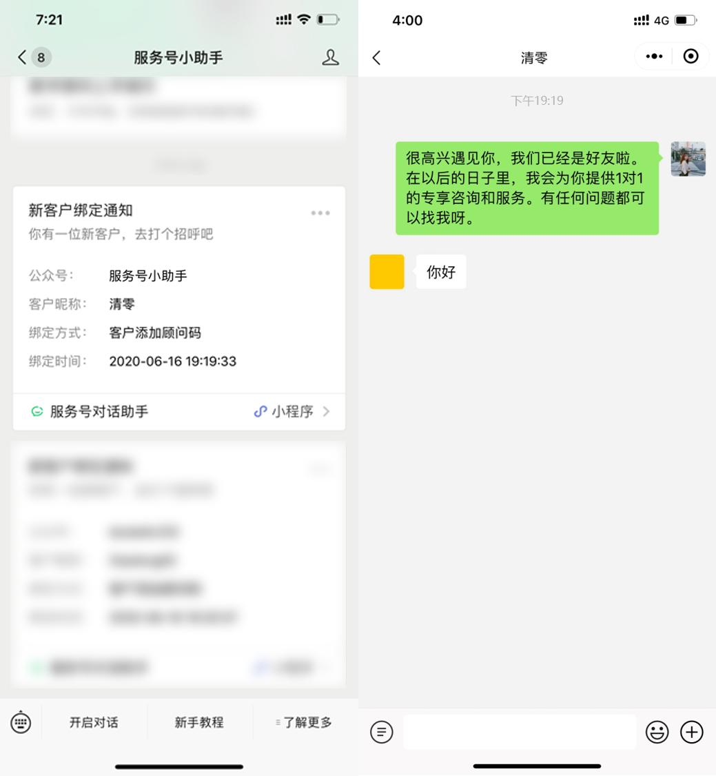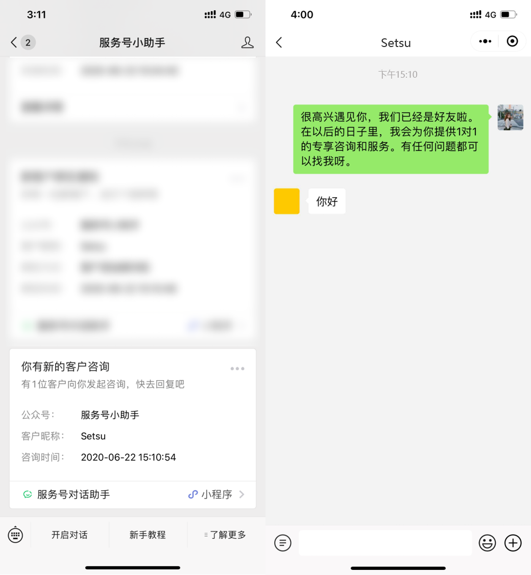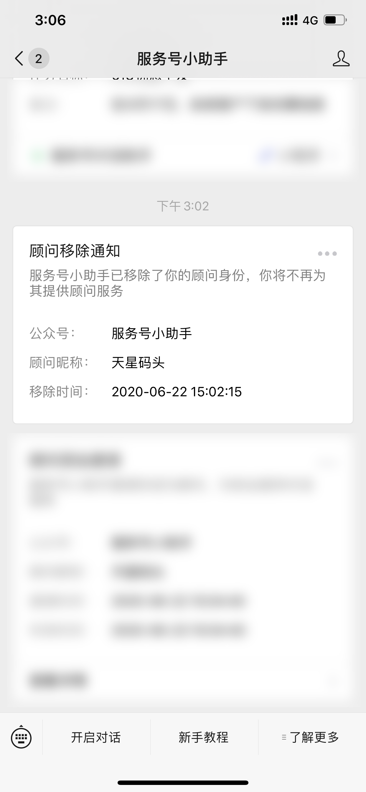 服务号对话能力6月16日迭代更新了MP端、API端、小程序端,添加了顾问新增确认环节,上线了“服务号小助手”模板消息推送能力。