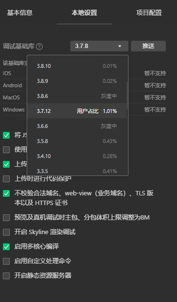 如图,基础库3.7.8已不在版本列表中,并且现有项目也无法下载3.7.8