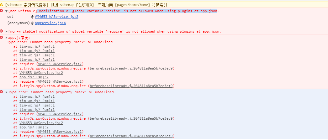 modification of global variable "define" is not allowed when using plugins at app.json.