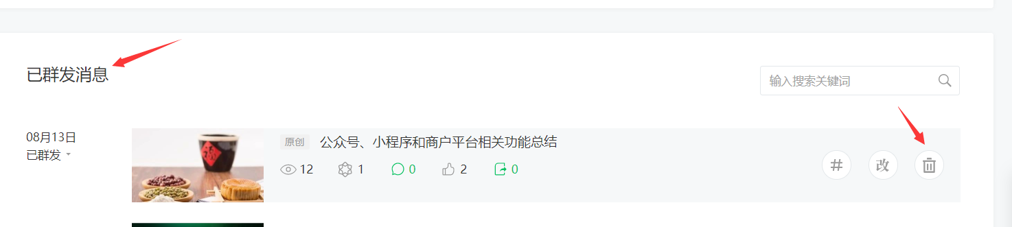 公众号管理后台,首页一直往下拉,找到“已群发消息”,鼠标移动到消息上面,就有删除按钮。