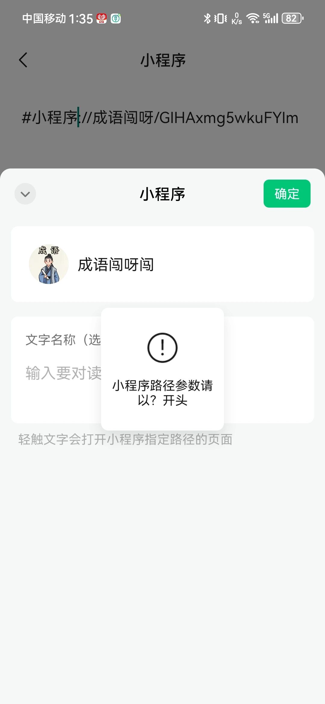 没有人遇到过这种请况?点击确认后就提示“小程序路径参数请以?开头”