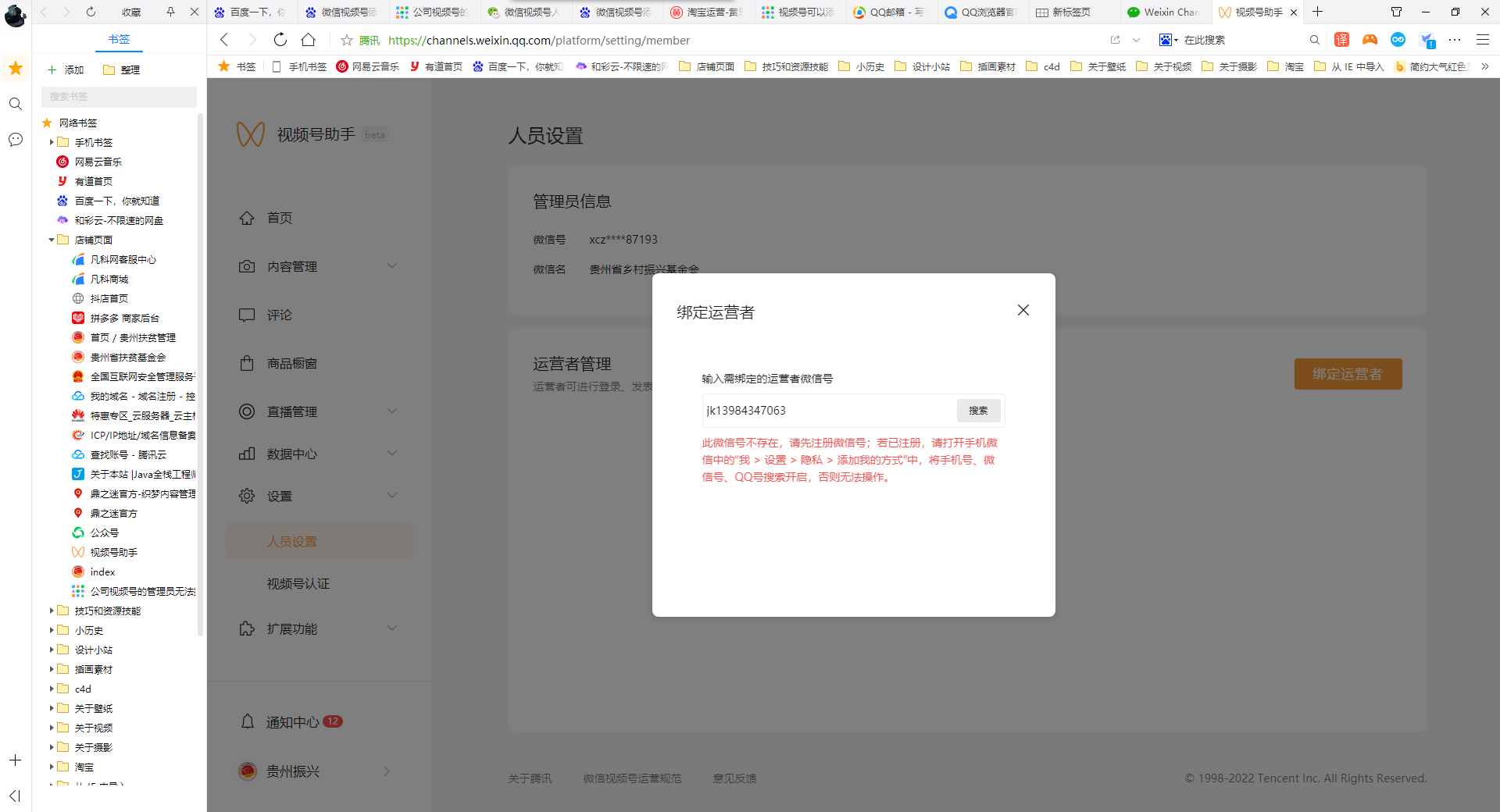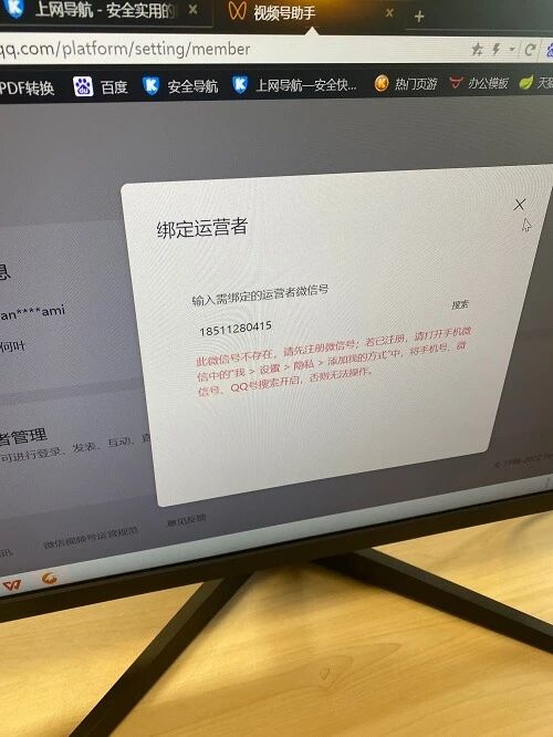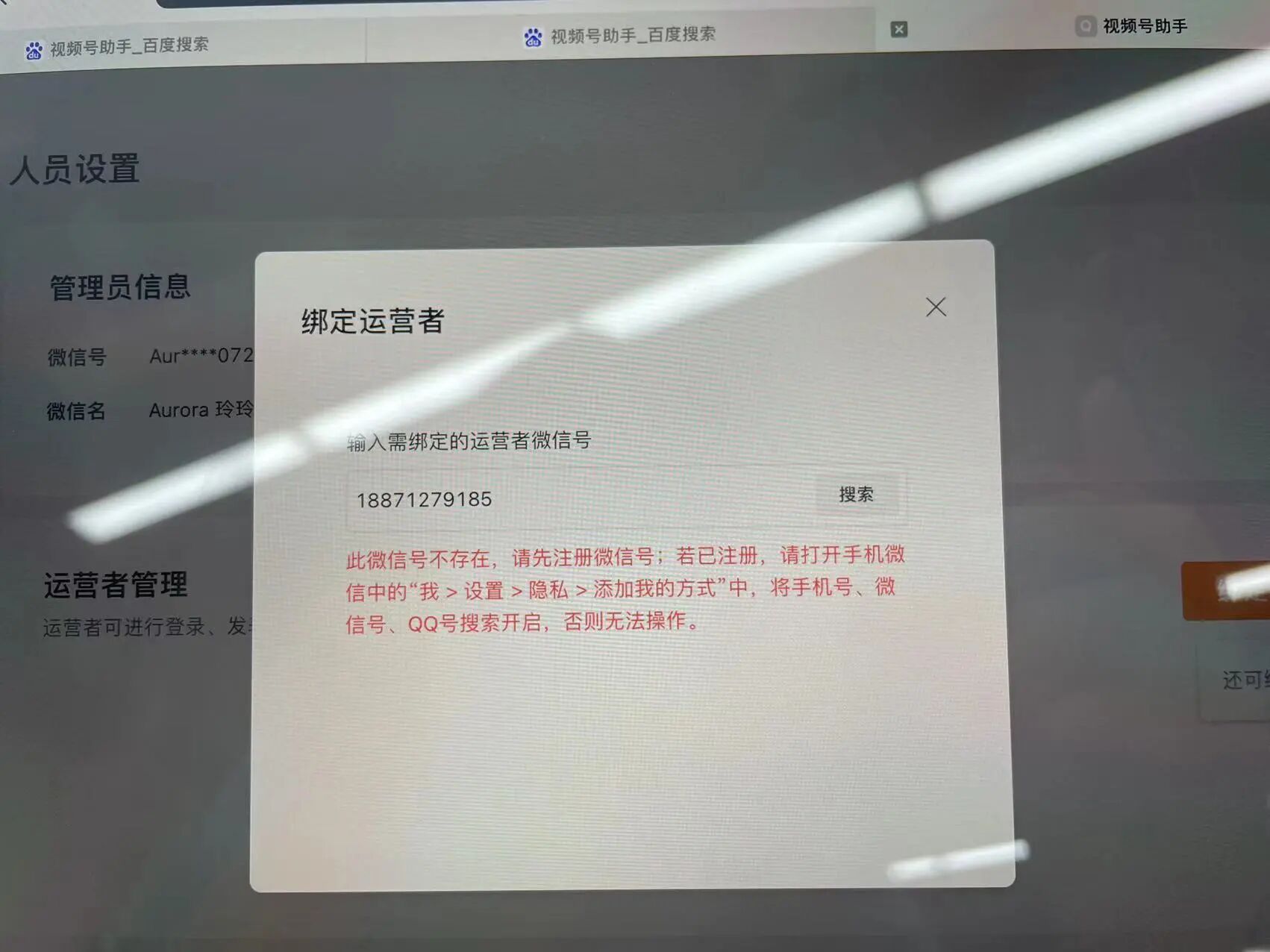 5、问题描述:添加运营者的时候,填入运营者微信号,但是显示微信号不存在