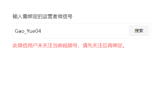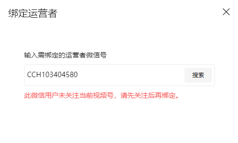 4、问题描述:视频号无法绑定该运营者,已经关注视频号,但仍然显示未关注。