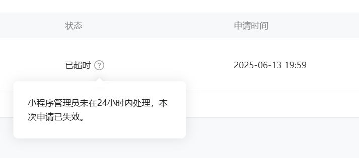 微信开发者平台半屏小程序申请两次了,但每次都超时一直没人审核,都过期两次了,麻烦处理一下?