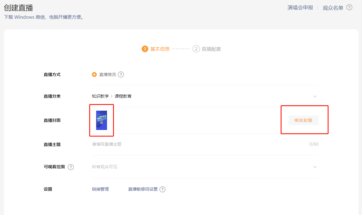 2、只能在视频号助手—直播间管理中设置封面?但总是出错,不显示修改后的封面,这是bug吗?