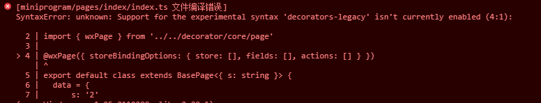 我在项目里使用了ts的装饰器,使用内置ts编译的时候报以下错误Support for the experimental syntax 'decorators-legacy' isn't currently enabled。