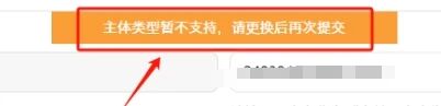 申请微信小店时,提示“主体类型暂不支持,请更换后再次提交”,