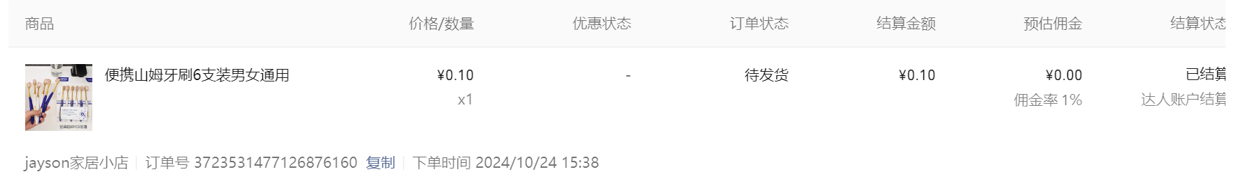但【获取带货商品列表】API接口显示实际结算佣金金额为0.