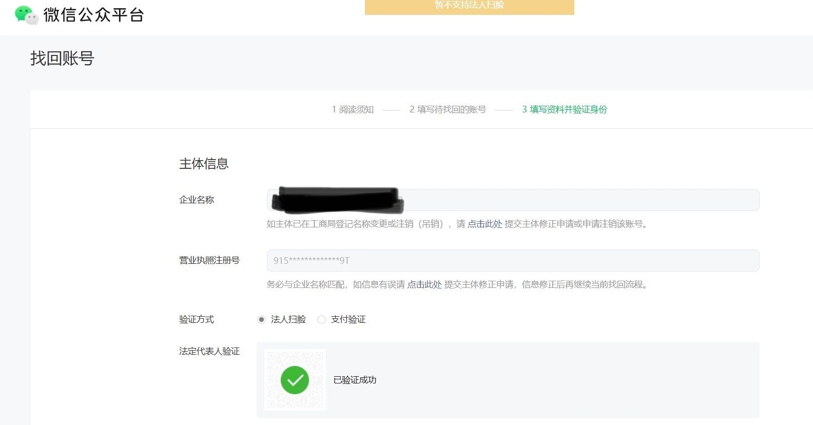 公众号换绑邮箱的时候,法人扫脸后显示不支持法人扫脸?