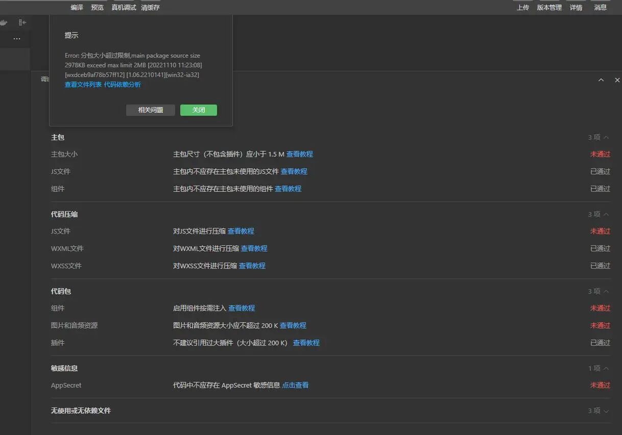 碰到了说主包太大的问题,但是我明明有进行分包呀,一样的代码其它同事在没有更新微信开发者工具前都是能正常上传代码的,但是更新后都一样,上传不了。没有更新的同事还是能正常上传