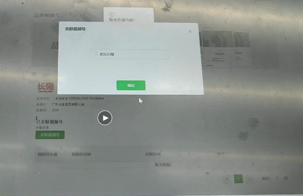在支付平台上操作“视频号关联品牌” 不通过,提示暂未开通该功能