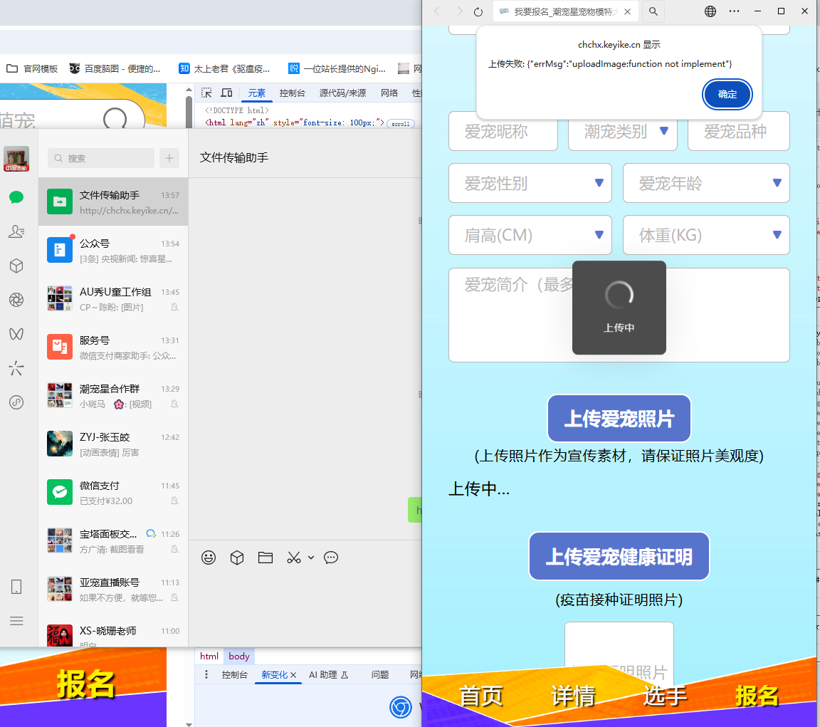 电脑端上传接口,报错。