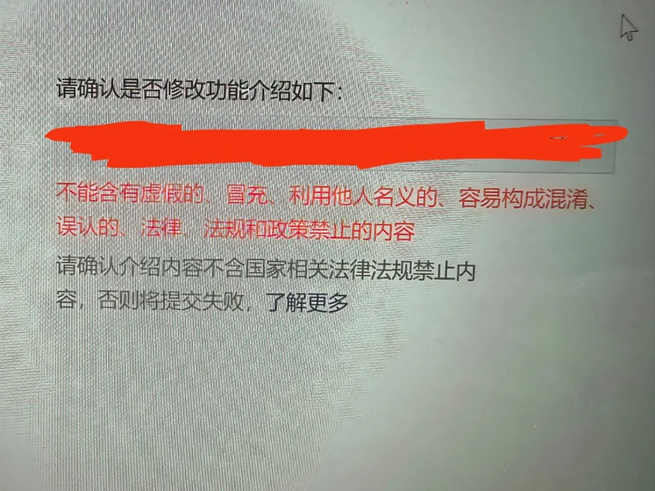 为什么公众号简介中输入个人姓名,身份,微信号会提示违反国家法律行政法规?