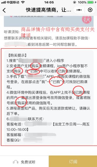 ④小程序内容指引、商品详情介绍中,含有限制的关键字