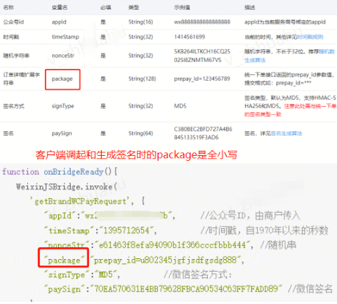 步骤三、调起支付时的大小写不正确