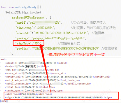 检查调起支付的签名类型是否与下单一致,比如下单是HMAC-SHA256,而调起支付用的是MD5