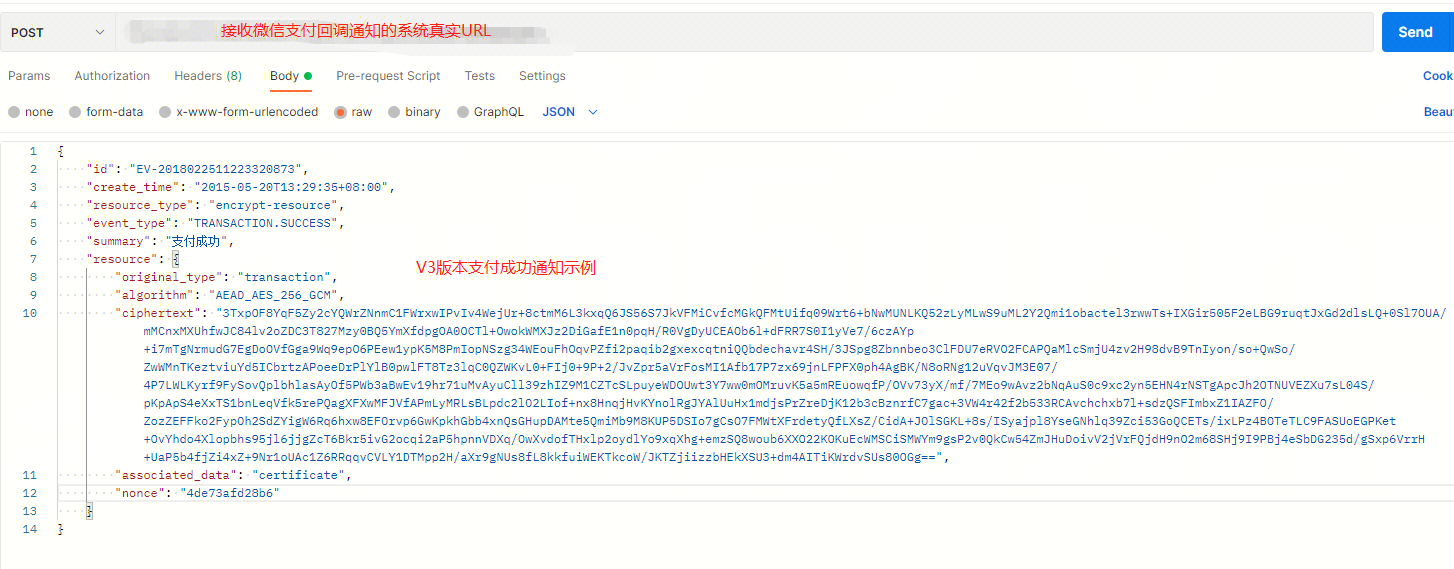 - 回调加密:V2接口无需加密,V3接口为AES-256-GCM加密