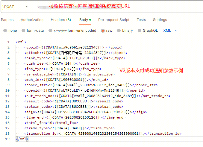 <appid><![CDATA[wxa9d9651ae8212345]]> </appid>