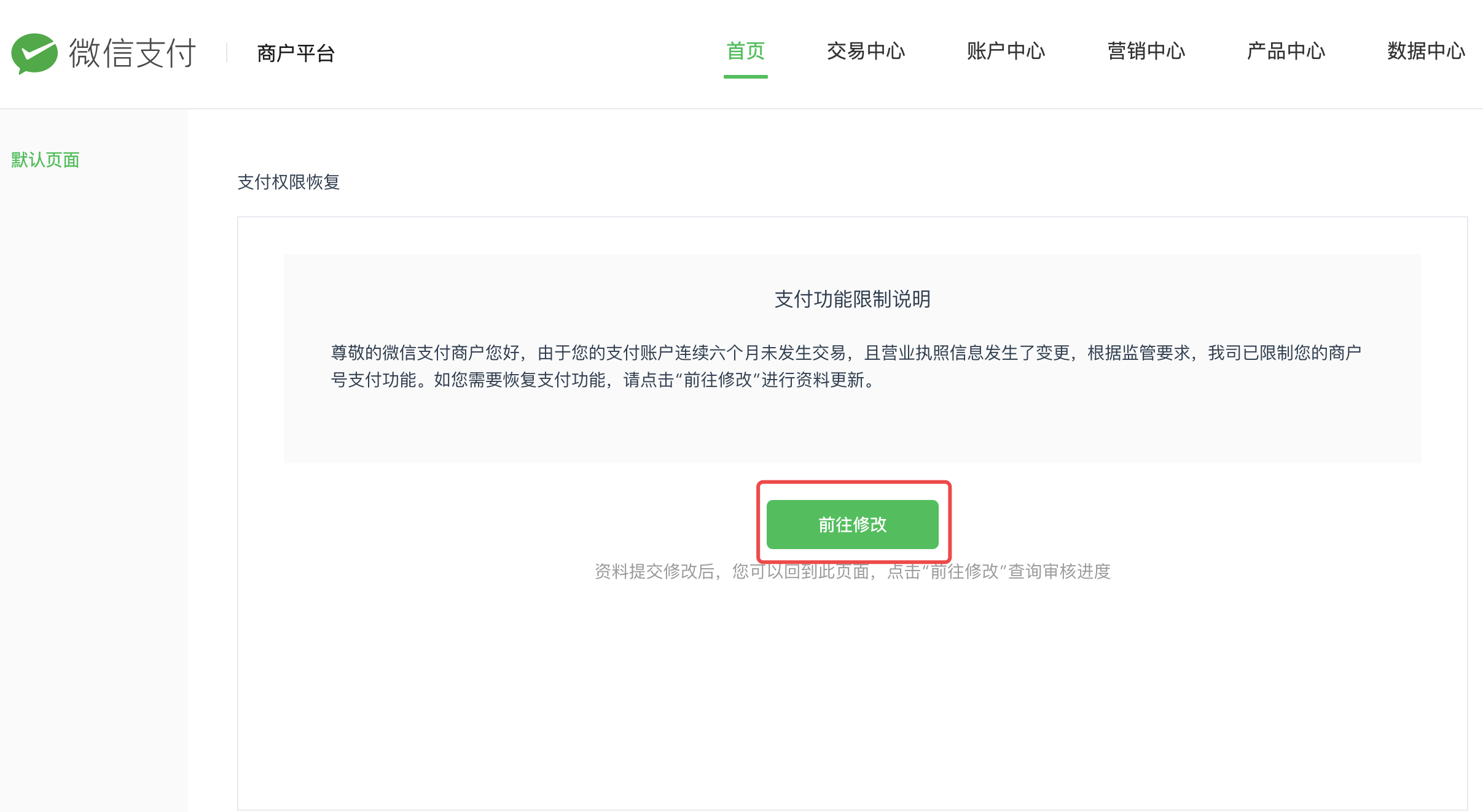 Q3:我已经登录商户平台更新资料了,为什么支付功能还未恢复?