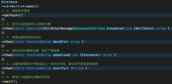 参数,并合并前一步的结果,传递给下一个函数处理; - 根据前俩函数的综合返回值,作为请求入参,流式及压缩模式获取帐单文件并落盘,落盘后的文件句柄,合并至前一步返回值;