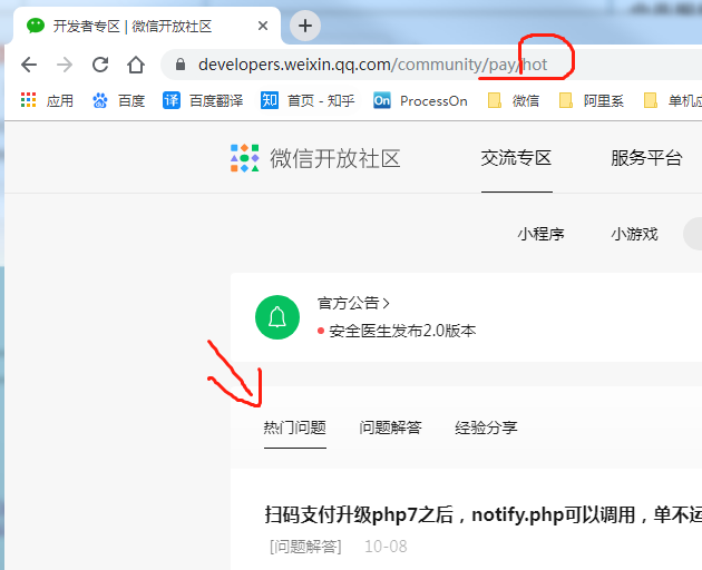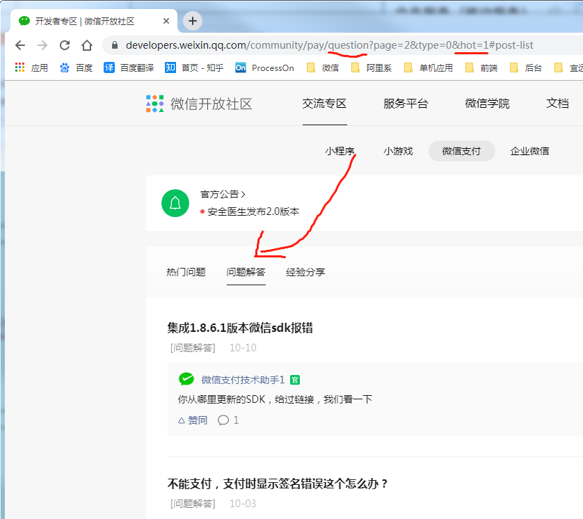微信支付板块中,【热门问题】的地址路径是****/pay/hot,【见图1】
