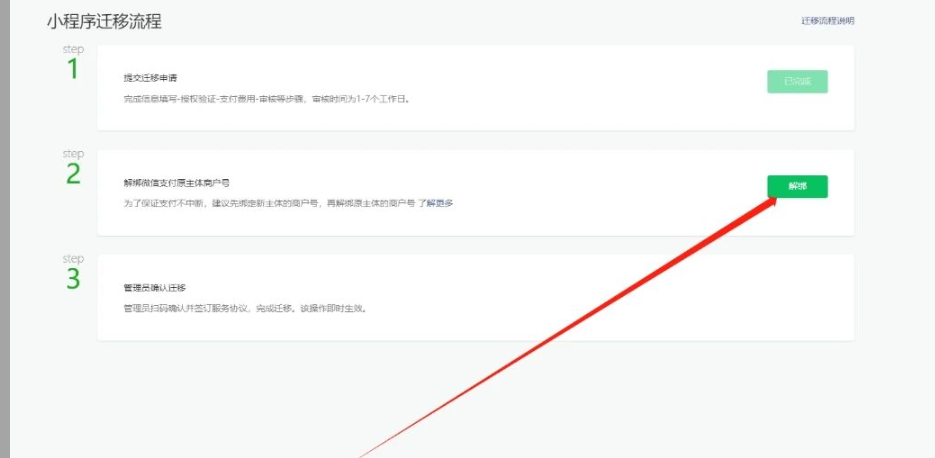 小程序无法自主解除微信商户,需要迁移才可以解绑。