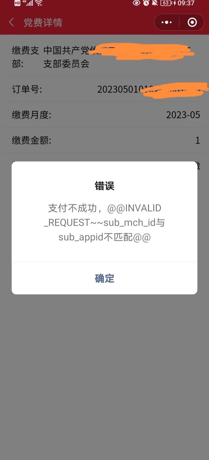 交党费的时候出现 无效请求 sub mchid 与sub appid不匹配 ,是我个人的问题么?