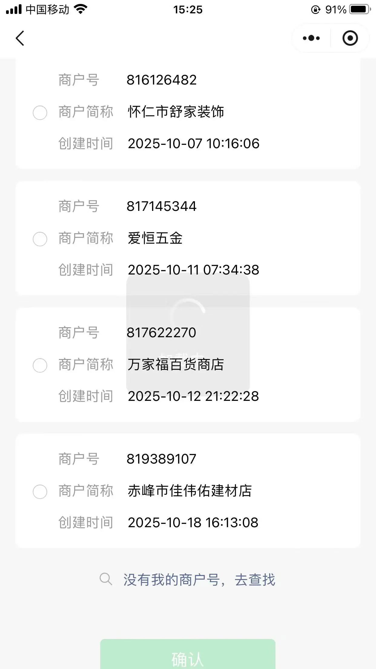 输入子商户号后点击添加就弹回这个界面转两圈就结束了,没任何提示也绑不上