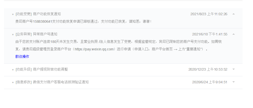因为太长时间没有产生交易 后被冻结 系统提示已申诉成功 恢复功能 但是小商店小程序还是无法支付