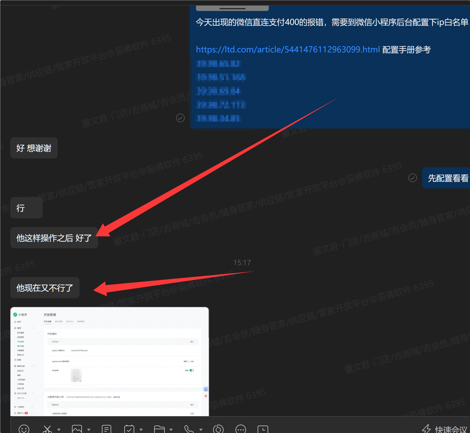 我们是小程序的服务商,有客户的小程序配置了小程序ip白名单后,就可以了。其他没配置的支付又报400,配置了ip白名单的就又不好使了。这个是什么情况??今天11点多开始的,之前一直没有问题