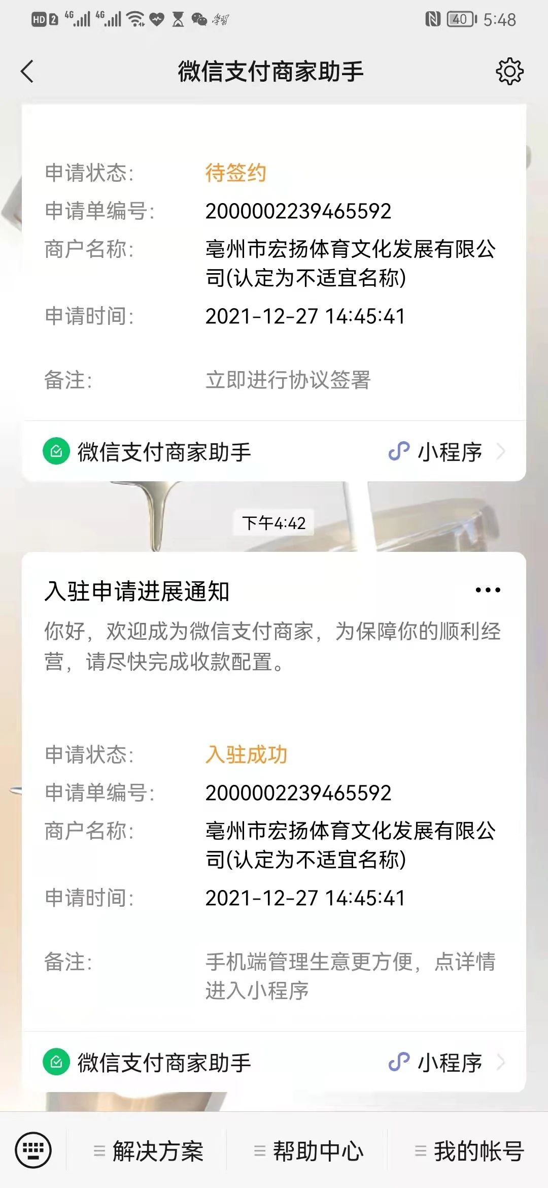 这样我们申请微信支付的时候,用亳州市宏扬体育文化发展有限公司就无法通过验证,只有使用亳州市宏扬体育文化发展有限公司(认定为不适宜名称)