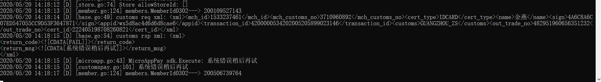 仔细对照过,参数都是正确的,之前的时候一直都是没有问题的,从昨天下午开始陆续报系统错误稍后再试。过一段时间就又能正常使用,以为能够正常使用了。但是,今天又返回系统错误稍后再试,麻烦看一下是什么问题?谢谢!