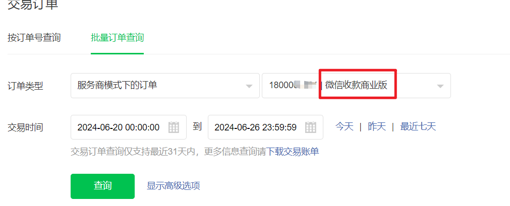 如题,在微信支付通过api查询订单信息中,本商户的订单查询我已经调通,通过api查询订单信息成功;但服务商下的订单遇到了问题,问题如下: