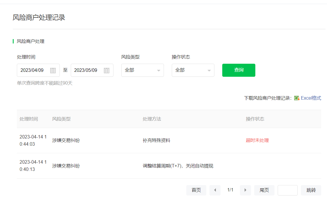 请问,2023-04-14收到违约提醒,没有及时提交补充资料,之后发现商户有冻结资金,关闭了自动提现,结算周期变长。