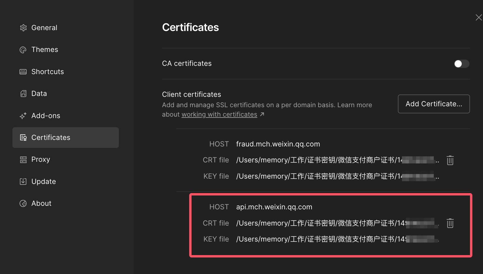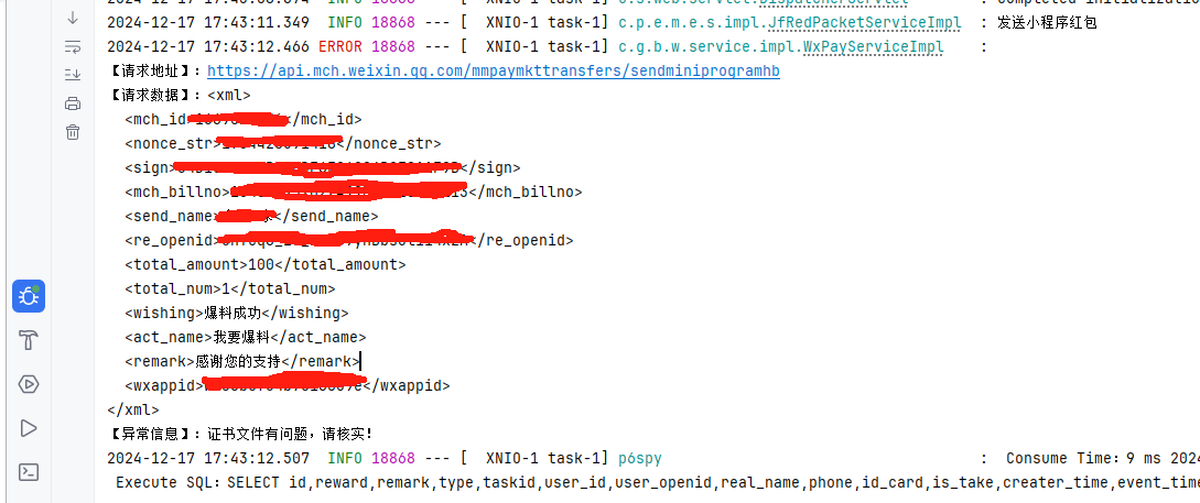 证书文件地址没问题,之前使用都是正常得,就从今年8月份开始报错提示:证书文件有问题,请核实!网上说是可能项目编译打包后,证书编码有问题,排除这个文件编译,尝试后还是不对,请大佬帮忙看下问题