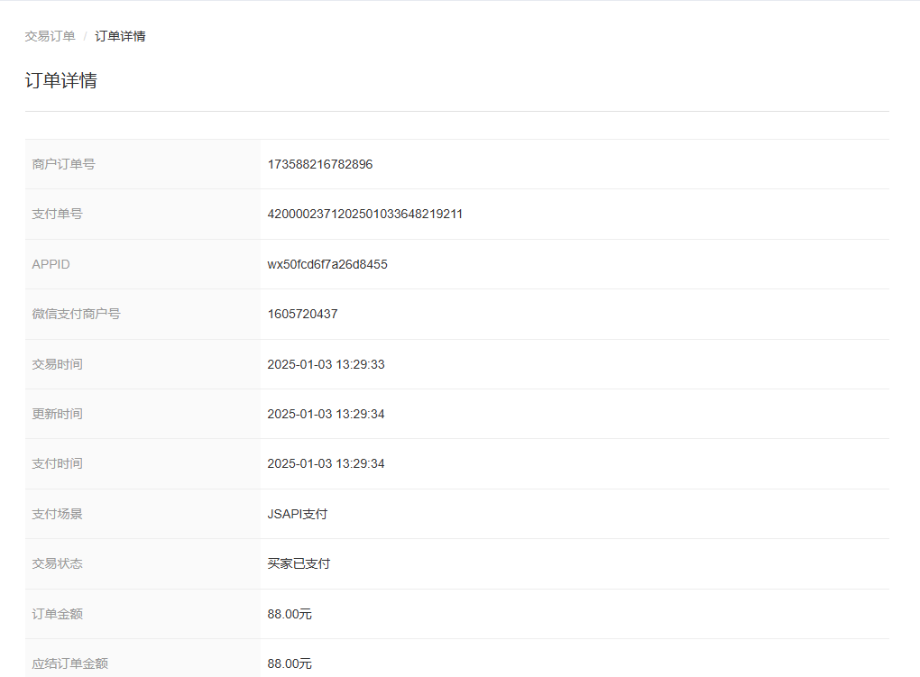 微信支付成功后没有回调,订单信息如下,请帮查询下谢谢