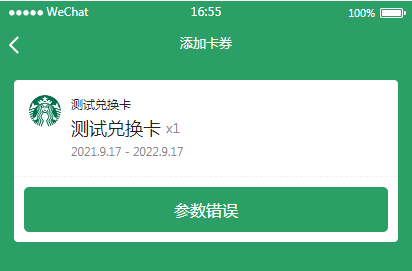 微信礼品卡,使用wx.addcard,指定code领取页面显示参数错误,不指定code显示已领取