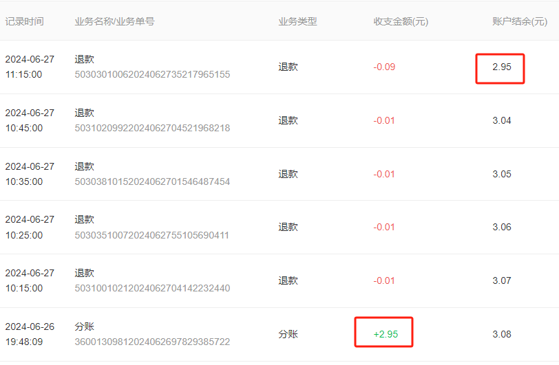 账上还有2.95元,为什么分账回退295分会提示:可用余额不足,请充值后重新发起?