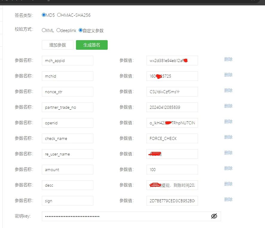 这2个过程有问题,你需要跟着官网给的key和参数 套进你的代码 来验证 得出的签名值 是否一至.不一至就会出现你这样的问题