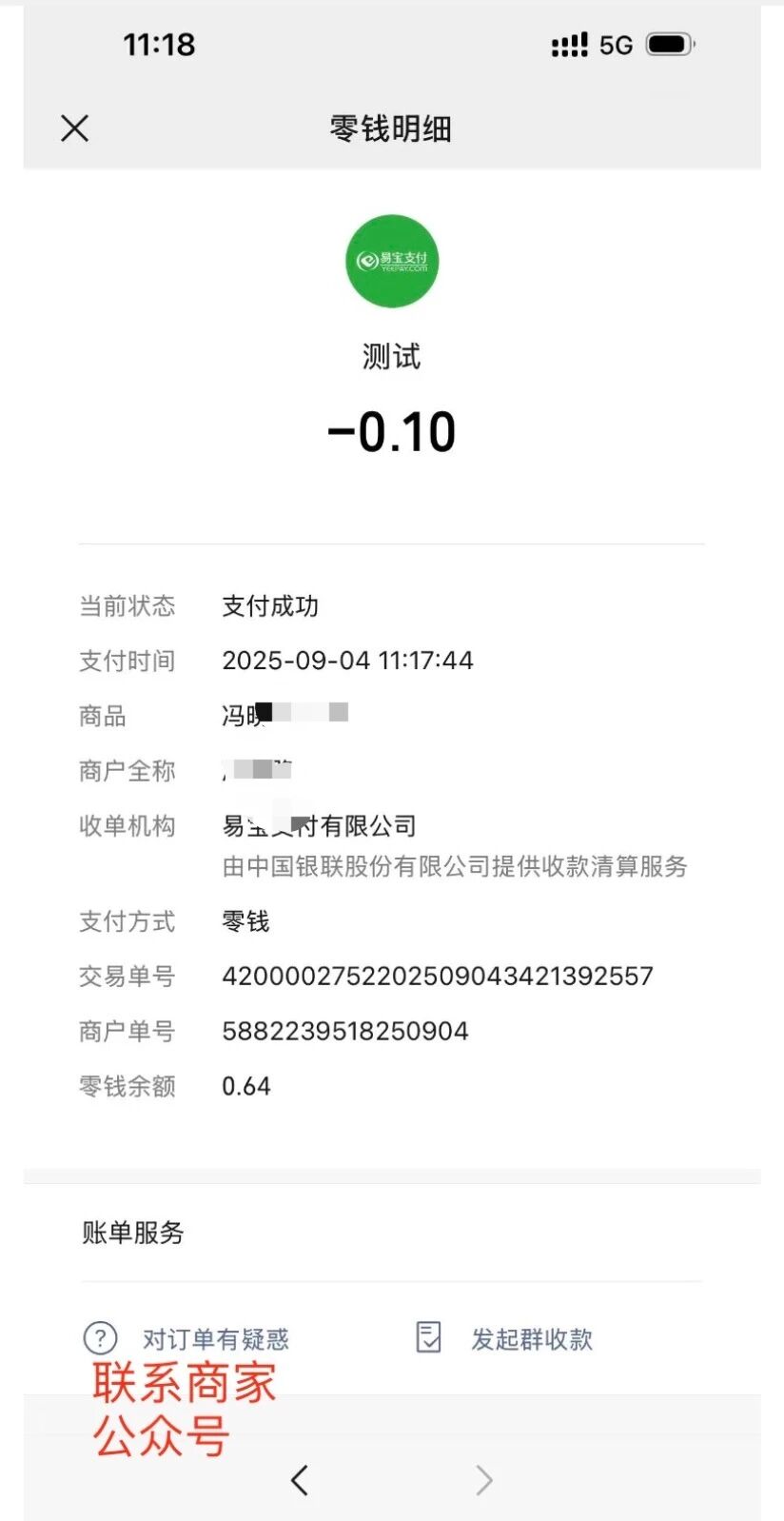公众号支付,商户号有服务号appid的绑定,支付账单详情页什么时候不展示“联系商家”?